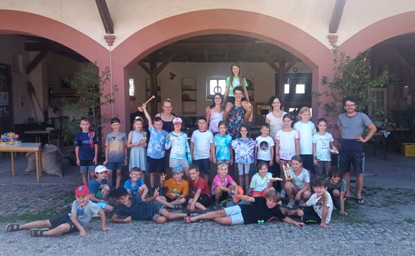 Es gab jeden Tag die Möglichkeit, T-Shirts zu batiken, im Gemüsegarten zu ernten, in der Werkstatt ein kleines Boot aus Holz zu bauen oder im Stall bei den Tieren zu helfen. Gemeinsame Aktivitäten rund um das Thema Wasser rundeten das Programm ab. Einige Kinder möchten beim nächsten Ferienspaß in den Herbstferien gleich wieder dabei sein.
