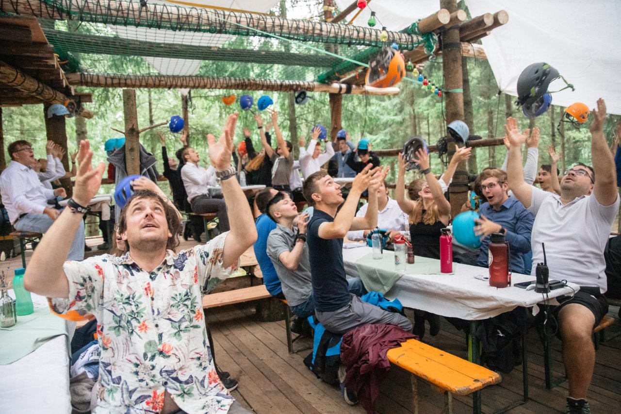 31 Teilnehmer und 30 Mitarbeiter haben gemeinschaftlich unser Baumhaus weitergebaut. Baumhausbauen ist ein Gemeinschaftsprojekt: Niemand kann allein schwere Stämme nach oben ziehen und entgegennehmen. Niemand kann allein einen Trägerbalken waagrecht einbinden. Und niemand kann allein innerhalb von sieben Bautagen fertig werden. Wir haben es als Team und als #BaumhauscampFamily geschafft – und wir sind mega stolz darauf. Diese Teamleistung verbindet und schafft eine Vertrauensbasis, die in so kurzer Zeit einzigartig ist. Jeder, der schon einmal beim Baumhauscamp dabei war, kann bestätigen, dass es ein besonderes Gottesgeschenk ist, wie gestärkt wir nach diesen zehn Tagen aus dem Wald gehen. Immer mit dabei ist Jesus.